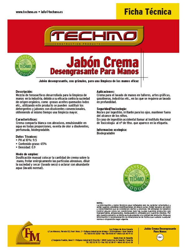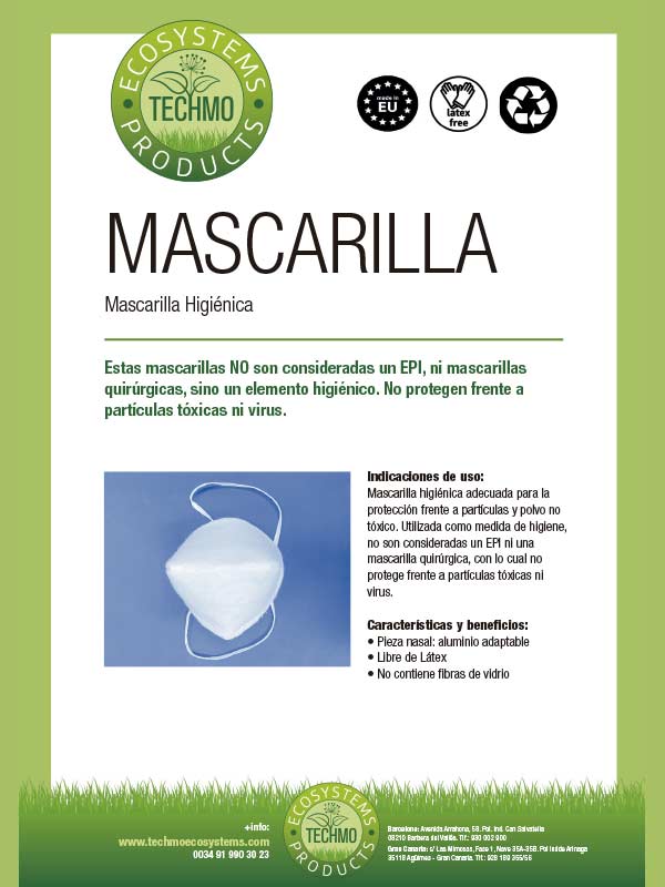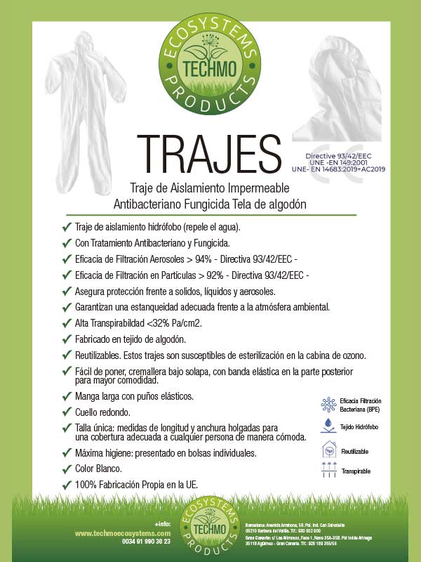 Nuestra empresa TECHMO, con una antigüedad de 20 años en el sector de la química Canarias, y con su afán de aportar, nuevas soluciones, comprometidos con el medio ambiente y haciendo llegar las últimas tecnologías al sector industrial y adaptarlas al también cliente final y al particular, para que también pueda usarla con el fin de mejorar nuestra calidad de vida. Hemos incorporado hace más de 5 años, a nuestro catálogo una serie de sistemas ecologicos para las necesidades en este campo. De esta manera nació Techmo Ecosystems Products, una gama de sistemas que cubre todas las necesidades de seguridad, protección e higiene en su hogar y empresa.