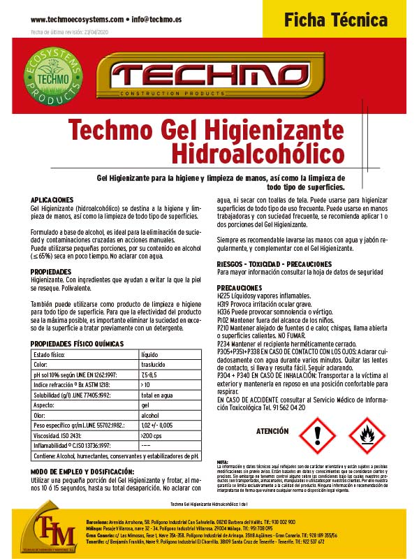 Ficha Técnica Techmo Gel Hidro-Alcohólico