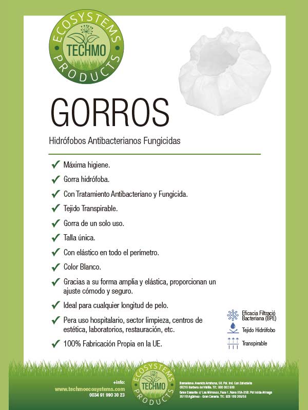 Gorros Hidrófobos Antibacterianos Fungicidas